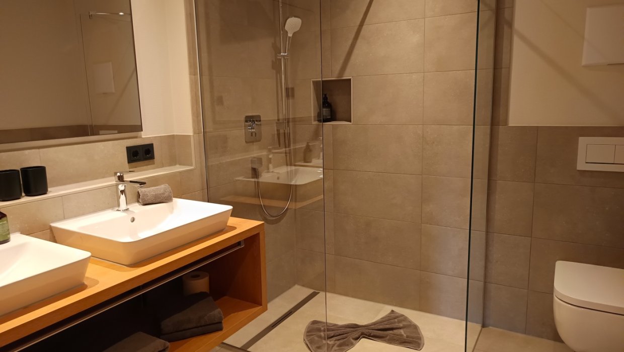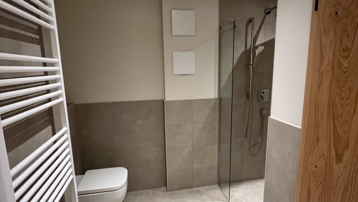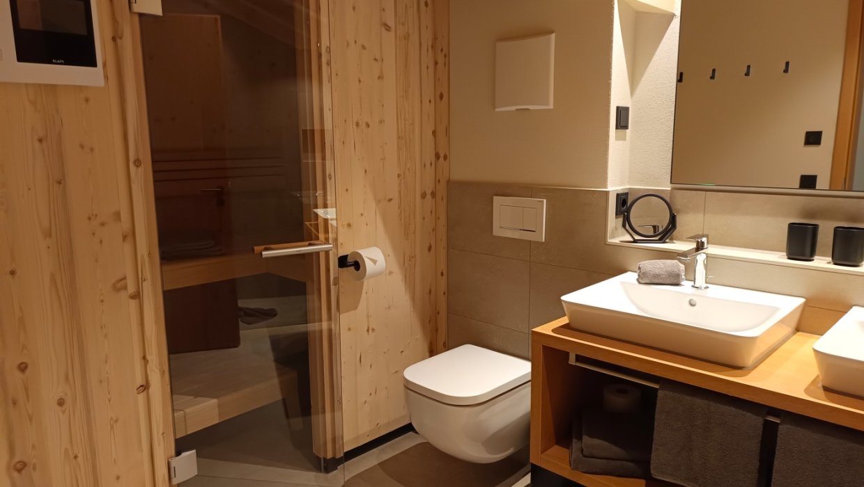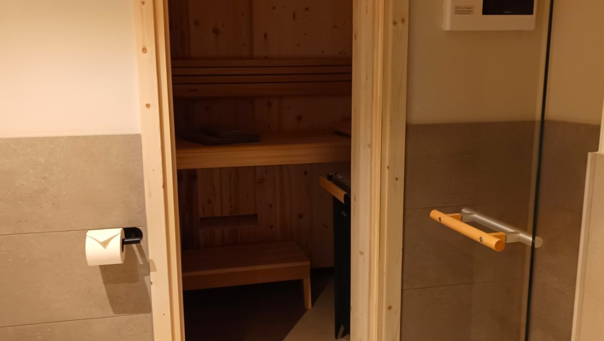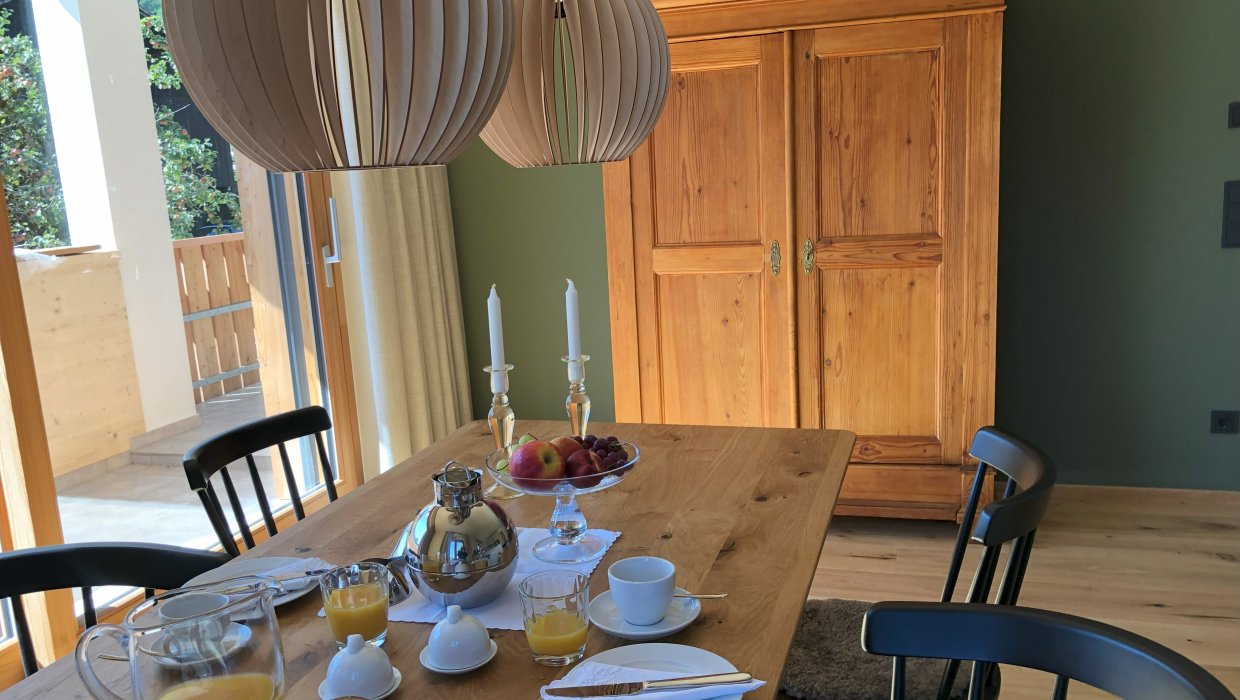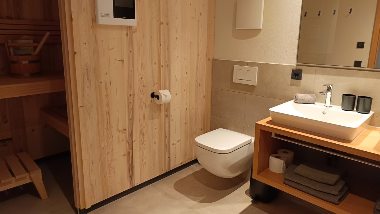 Hier lässt es sich gut sein. Die großzügige Terrasse mit Panoramablick lädt zum Durchatmen ein, während die offene Wohnküche mit Spülmaschine, Kühlschrank und Herd bestens ausgestattet ist. Am Esstisch für zwei lässt sich der Tag entspannt starten – ob mit Kaffee in der Morgensonne oder einem gemütlichen Abendessen.