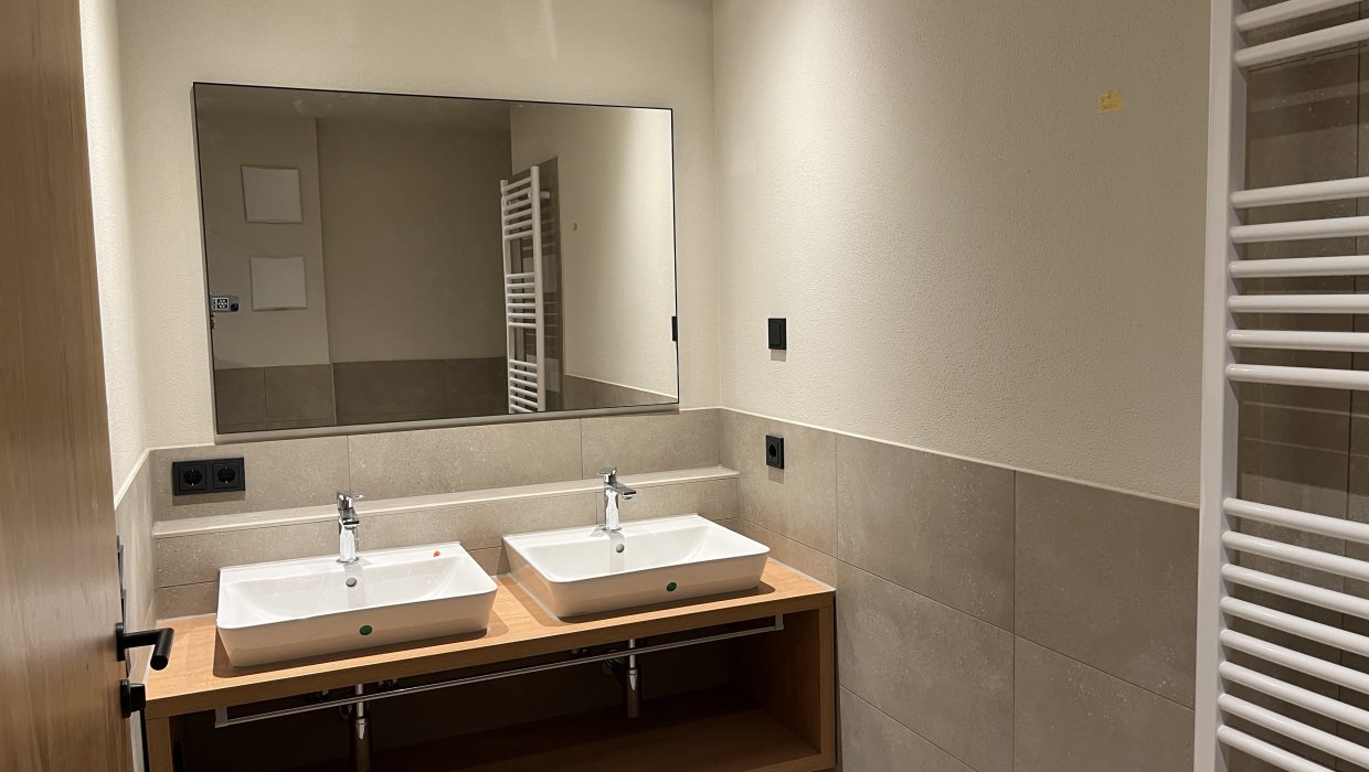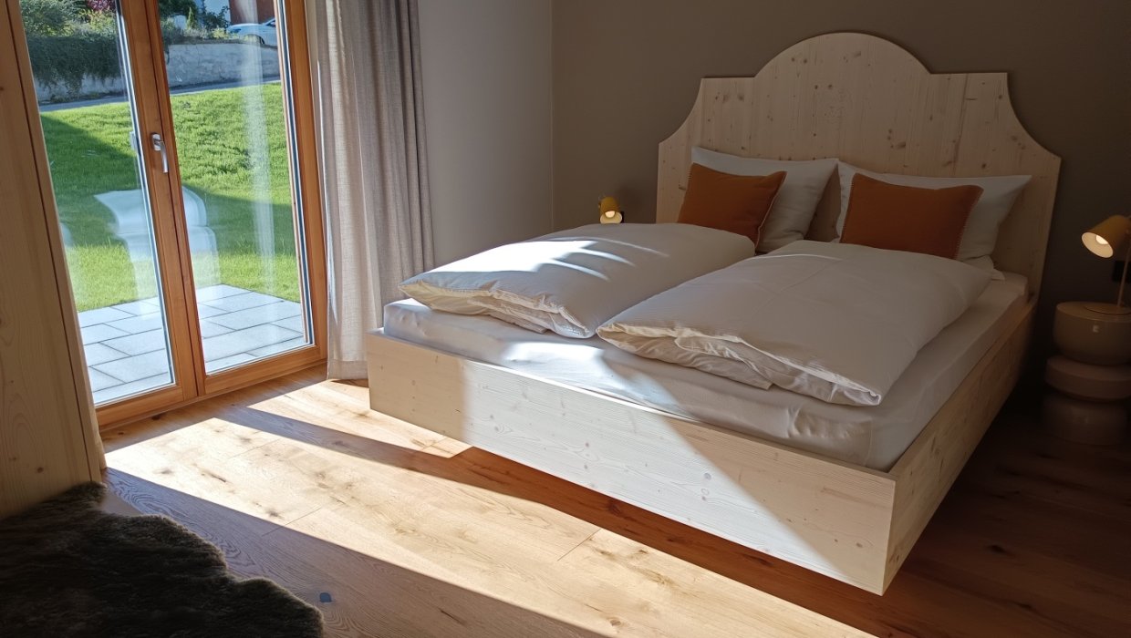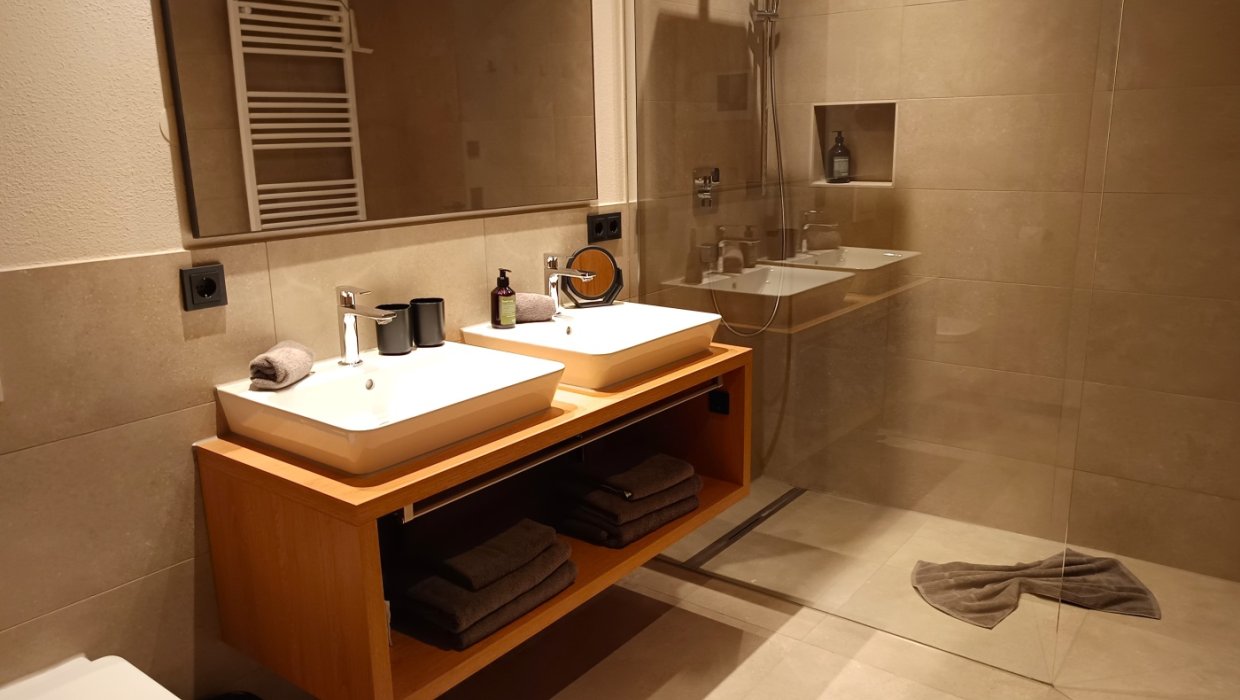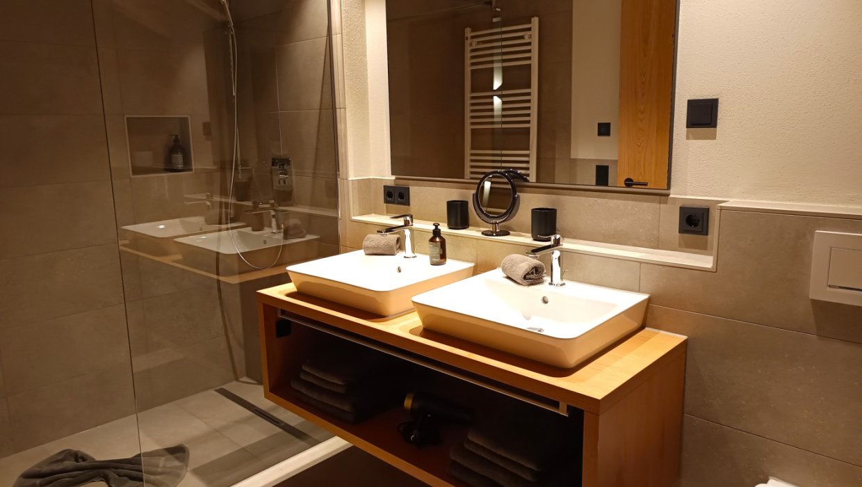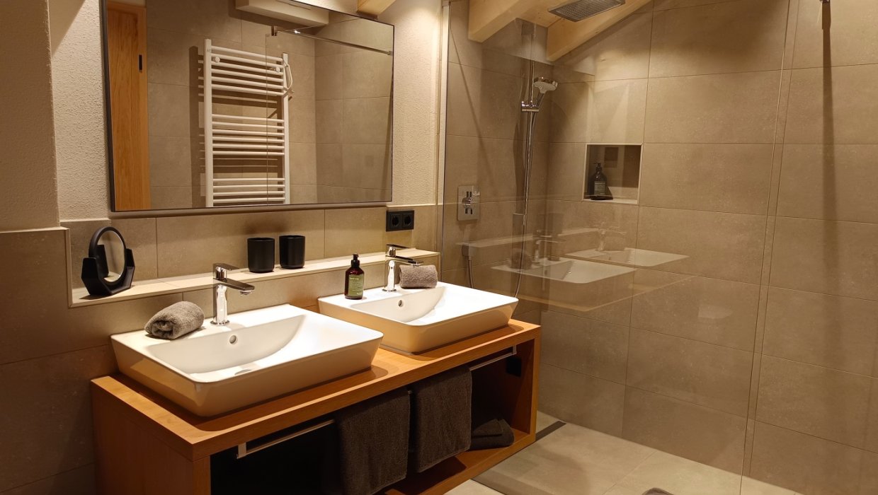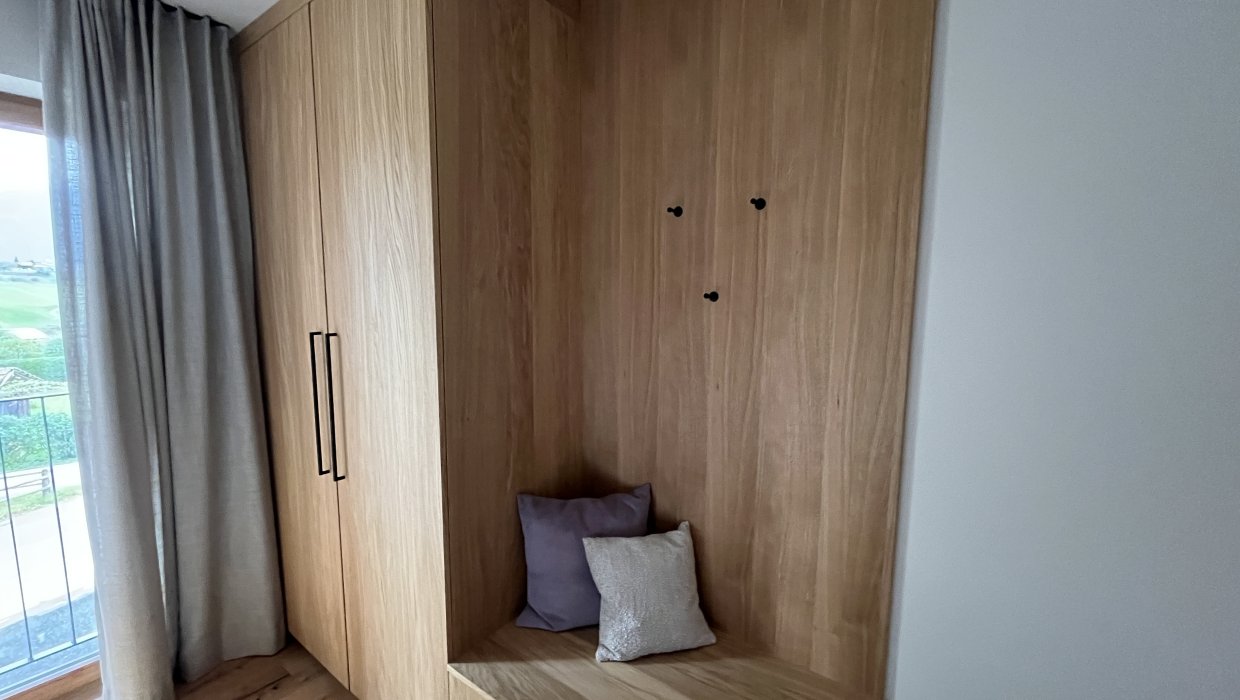Hier lässt es sich gut sein. Die großzügige Terrasse mit Panoramablick lädt zum Durchatmen ein, während die offene Wohnküche mit Spülmaschine, Kühlschrank und Herd bestens ausgestattet ist. Am Esstisch für zwei lässt sich der Tag entspannt starten – ob mit Kaffee in der Morgensonne oder einem gemütlichen Abendessen.