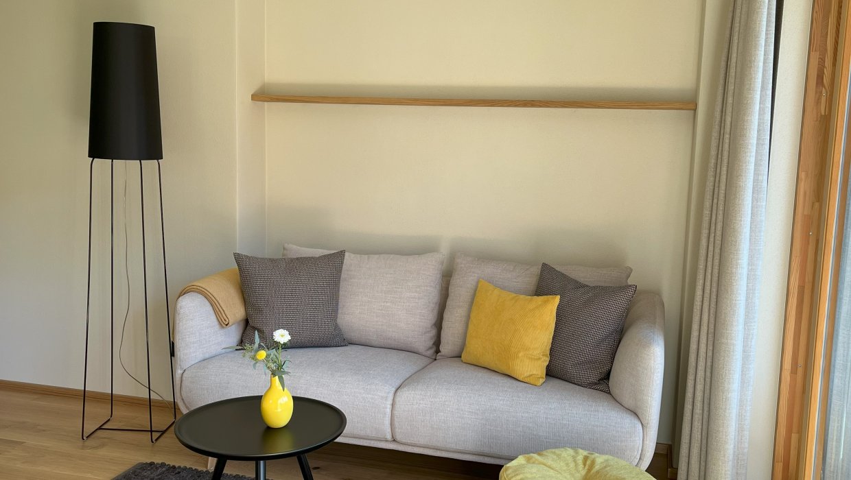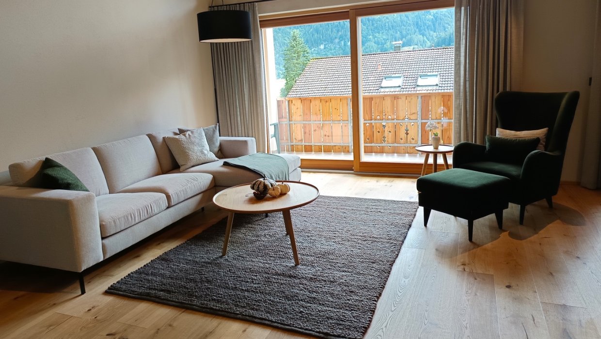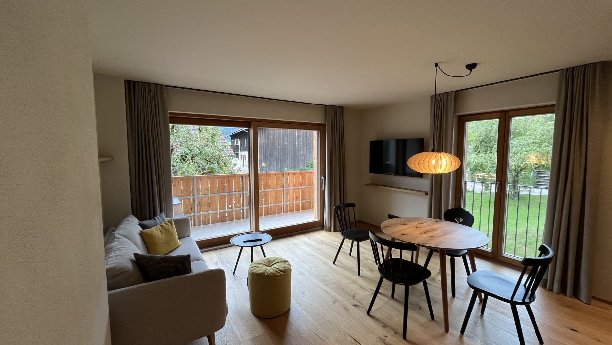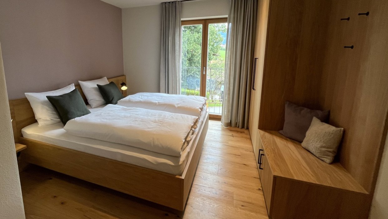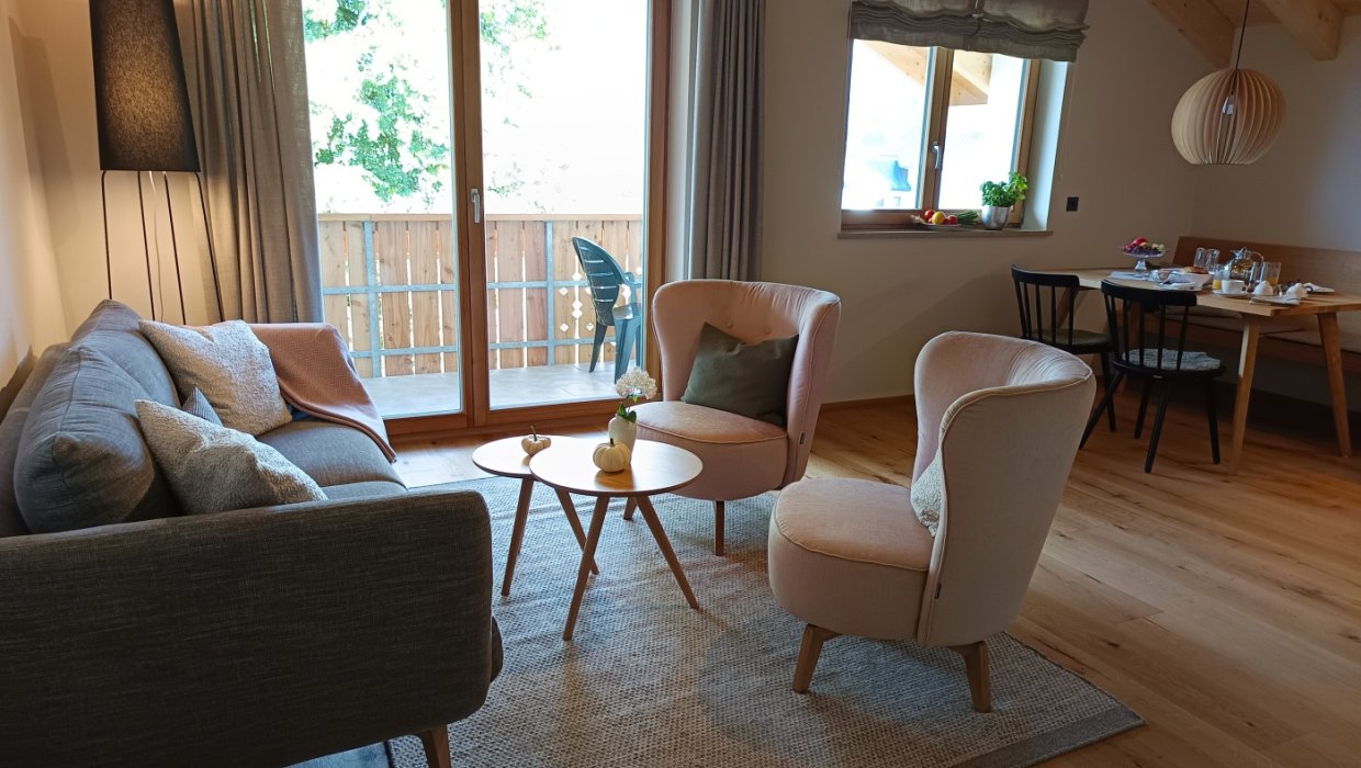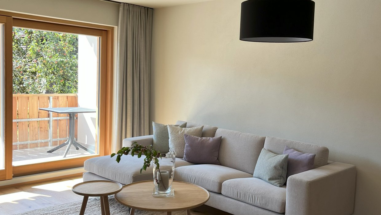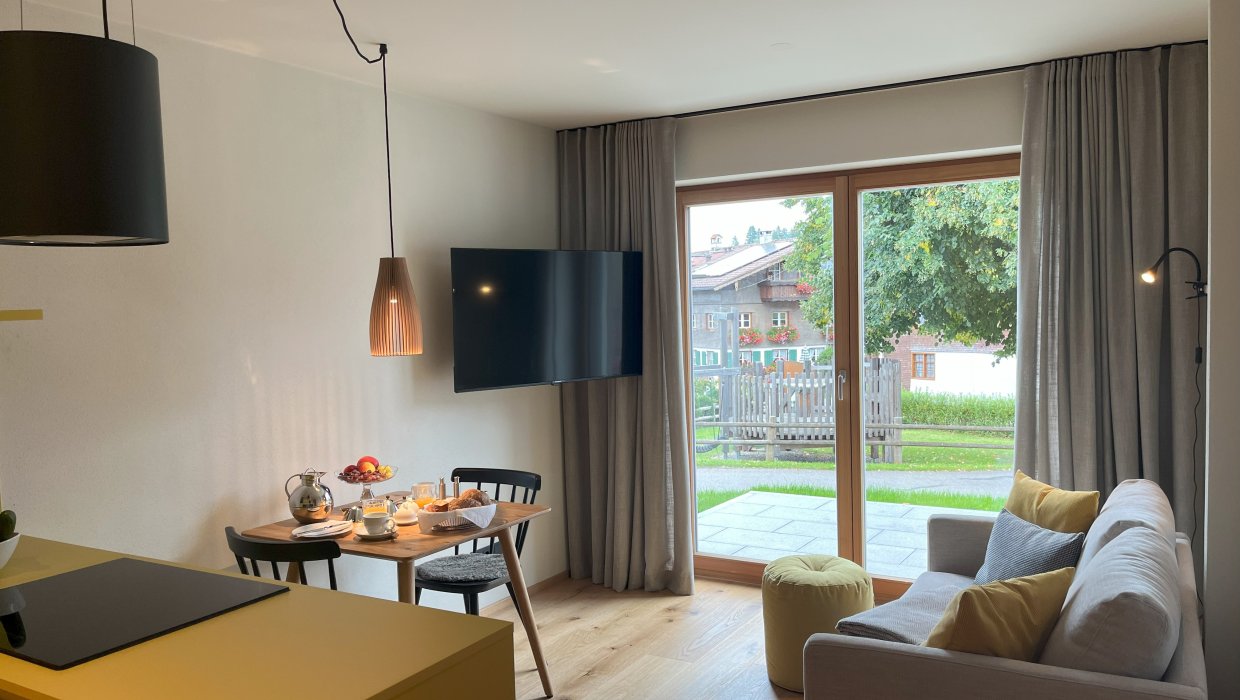 Gemütlich, hell und mit Panorama-Ausblick: Dieses Appartement mit 40 qm im Erdgeschoss bietet eine große Terrasse, eine offene Wohnküche und ein kuscheliges Schlafzimmer – perfekt für eine entspannte Auszeit.
